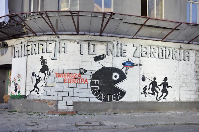On May, 21st, 2015 the crème de la crème of European racism will gather in Warsaw, Poland, to celebrate the 10th anniversary of the creation of one of the most influential meta-organisations that guards assets of the Fortress Europe. The organization, not widely known, until recently standing in the shadows, is a hybrid of border police and intelligence service, as well as aggressive promoter of anti-migrant policy. Frontex (from French Frontieres exterieurs), being discussed here, is the executive body of EU (anti)migration policy – enjoys autonomy in decision-making (for EU foreign policy), and has a yearly growing budget, which is not accounted. Budget, used to finance futuristic projects, straight from dystopia, like an automatic system of land drones, known as TALOS project, carried out in cooperation that included Warsaw University of Technology, Israeli Aerospace Industries and a lot of other military corporations.The trust also allows them to conduct their own foreign policy on migration – dealing with the neighbouring dictatorships (Belarus, Libya, Tunisia, Algeria), sponsoring and organizing repression against refugees in a secure buffer zone, which blurs responsibility. As a result, the border of Europe moves farther away from the ‘old continent’, helping to hide the effects of this policy in the eyes of Europeans. Sponsored camps in the countries of the global south and ruthless anti-human migration policy of the EU countries result in real victims – tens of thousands of people drown, starve, are left at sea or desert, or are directly shot – every year more than at the Berlin wall in the entire time of its existence.